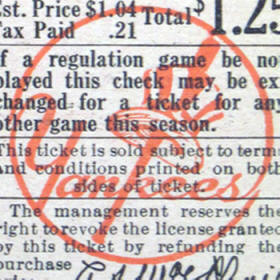 The next version of what eventually became today’s logo appeared on a team schedule that was released prior to the 1946 season. This artwork was also featured on Yankees tickets throughout 1946—presumably the result of all tickets having been printed in the months leading up to the new season.
